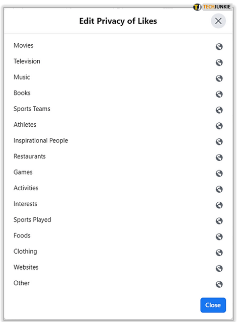 - Once yous're finished editing who can and cannot see your likes, click the Close push button at the bottom.